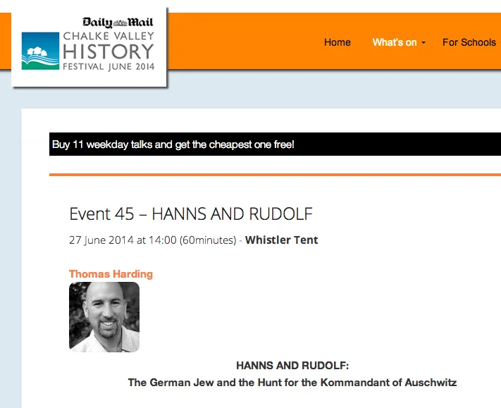 Thomas will be speaking at the Chalke Valley History Festival about his book Hanns and Rudolf.