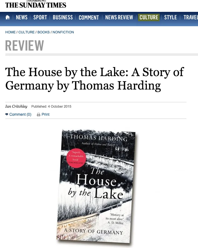 Thomas Harding’s first book, Hanns and Rudolf, told the story of his great-uncle, a German-born soldier in the British Army during the Second World War, and the pursuit of Rudolf Höss, the Kommandant of Auschwitz. His latest also mines his family’s history, this time focusing on a lake house built in 1927 by his great-grandfather on the outskirts of Berlin. But this is far more than a family memoir: by tracing the lives of the different families who lived there, Hardingsheds fresh light on the German 20th century, a tale of war, spies, murder and political, racial and social division.
